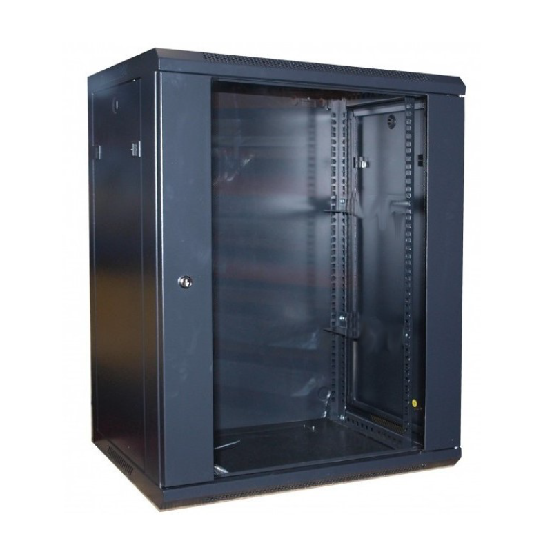 Rack Mural 19" 12U A600 F600 mm. Puerta de cristal.