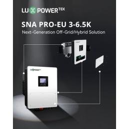 El LuxPower SNA PRO-EU de 6,5 kW es el inversor híbrido de nueva generación de LuxPowerTek, diseñado para sistemas de energía solar monofásica con almacenamiento en baterías de 48 V. Este es el modelo de mayor capacidad de la serie SNA PRO-EU (3 kW – 6,5 kW), ideal para proyectos residenciales de alta gama, villas, pequeños talleres y sistemas que requieren una capacidad de respaldo robusta, estable y a largo plazo.