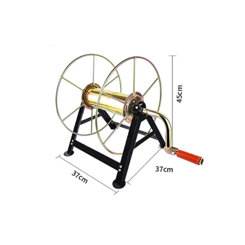 Enrollador de Manguera de 100 Metros. El enrollador de manguera de 100 metros ha sido diseñado para facilitar el almacenamiento y manejo de mangueras de alta presión o de uso general, manteniendo el área de trabajo ordenada y segura. Fabricado en material resistente a la corrosión, garantiza una larga durabilidad incluso en entornos exteriores o industriales. Su sistema de enrollado suave permite desenrollar y recoger la manguera de forma práctica y sin torsiones.
